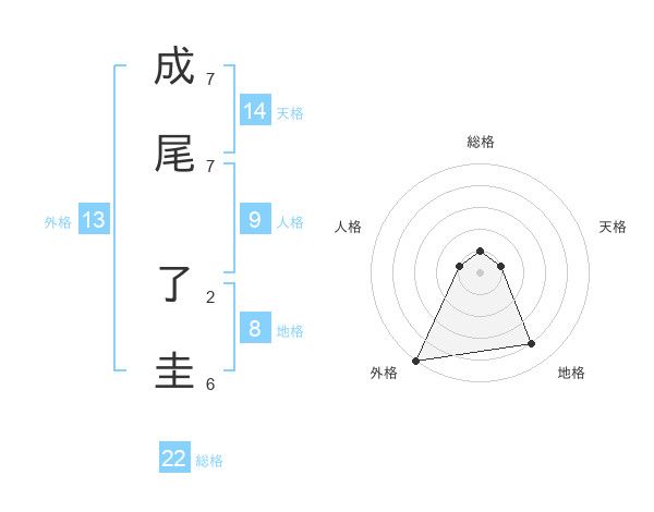 成尾 了圭さんの外格は13画の5点!