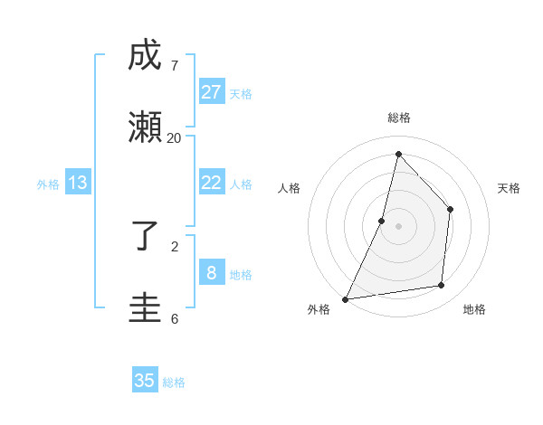 成瀬 了圭さんの外格は13画の5点!