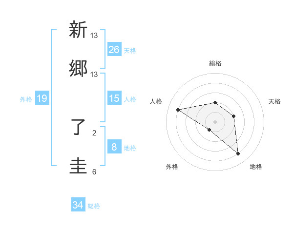 新郷 了圭さんを姓名の画数から五運を鑑定
