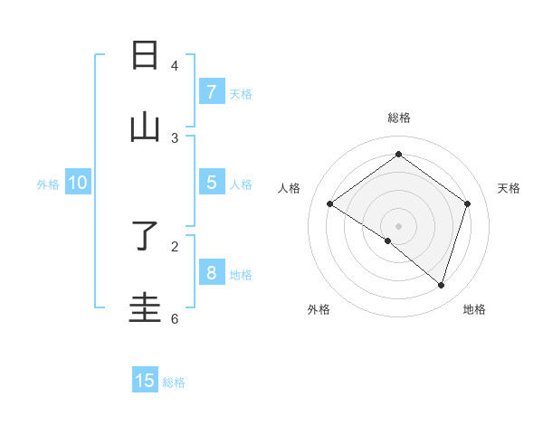 日山 了圭さんの総格は15画の4点!