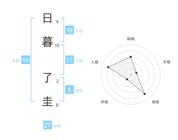 日暮 了圭さんの総格は27画の3点!