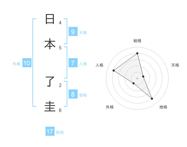 日本 了圭さんの総格は17画の4点!