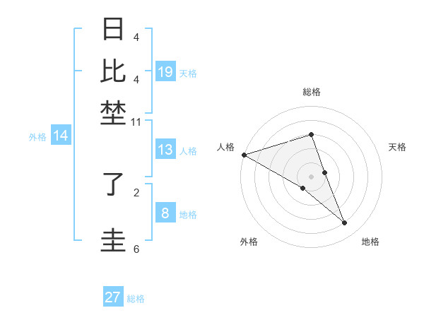 日比埜 了圭さんを姓名の画数から五運を鑑定