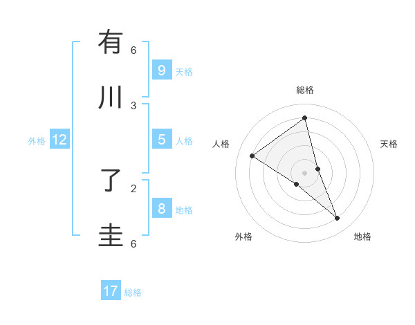 有川 了圭さんの総格は17画の4点!