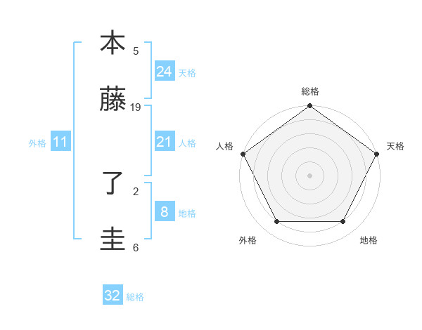 本藤 了圭さんの総格は32画の5点!