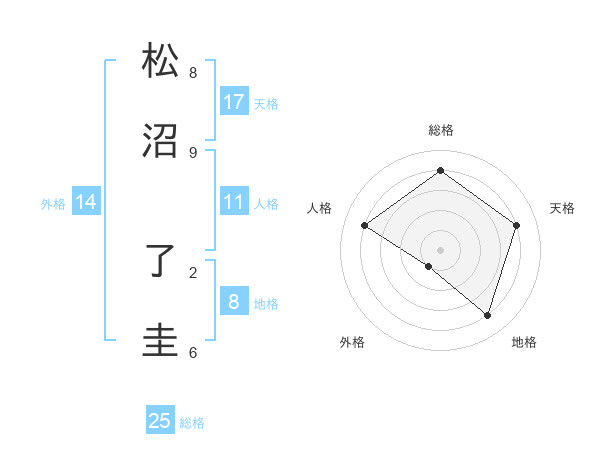 松沼 了圭さんの総格は25画の4点!