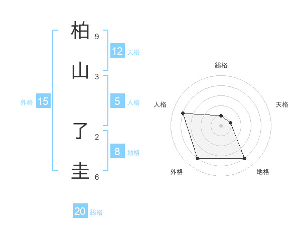 柏山 了圭さんを姓名の画数から五運を鑑定