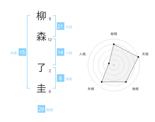 柳森 了圭さんの天格は21画の5点!