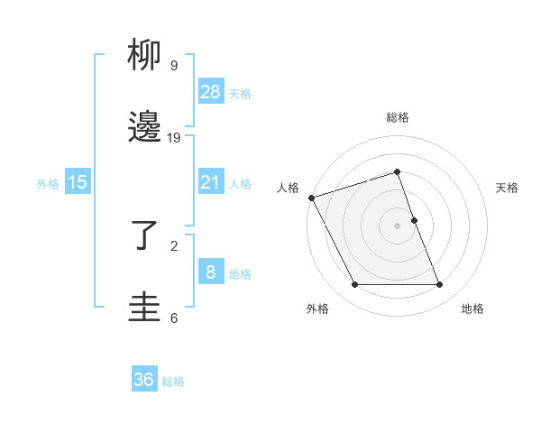 柳邊 了圭さんを姓名の画数から五運を鑑定