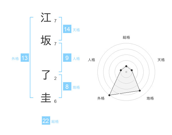 江坂 了圭さんを姓名の画数から五運を鑑定