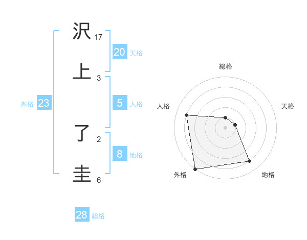 沢上 了圭さんの外格は23画の5点!