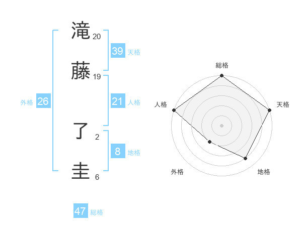 滝藤 了圭さんを姓名の画数から五運を鑑定