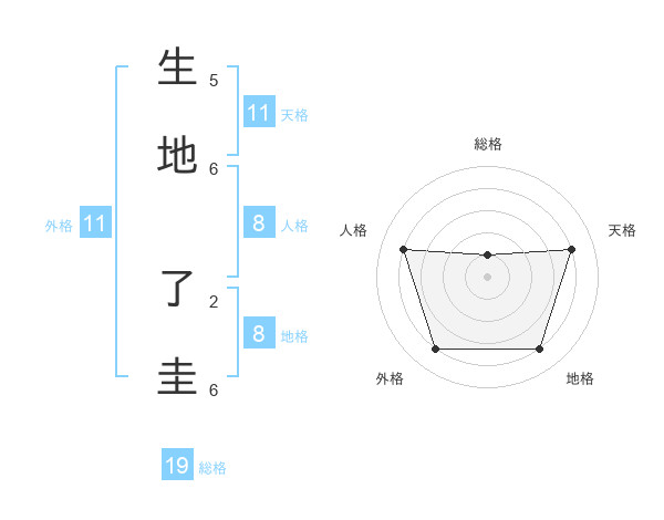 生地 了圭さんの地格は8画の4点!