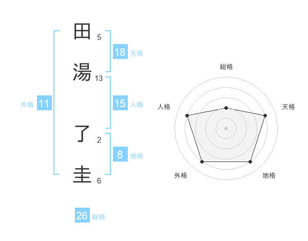 田湯 了圭さんを姓名の画数から五運を鑑定
