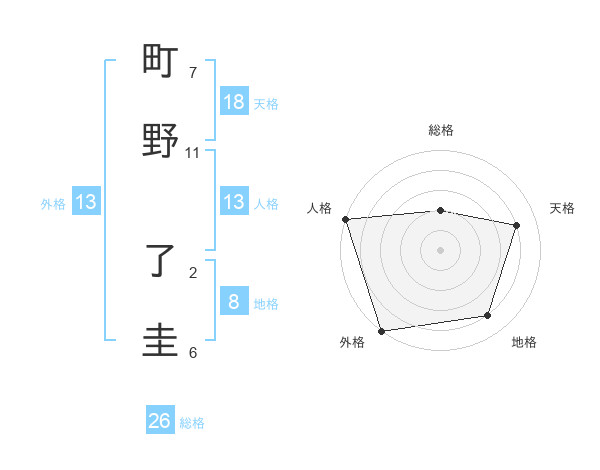 町野 了圭さんの外格は13画の5点!