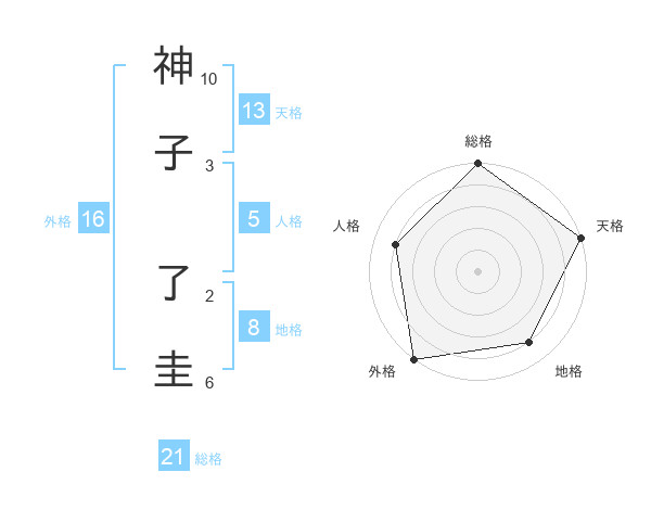 神子 了圭さんの総格は21画の5点!