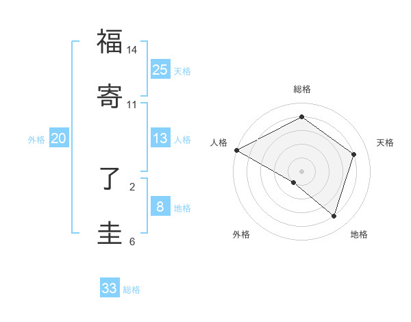 福寄 了圭さんの総格は33画の4点