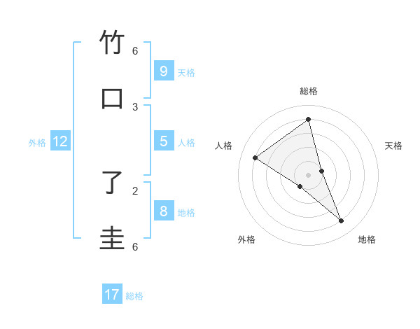 竹口 了圭さんの総格は17画の4点!
