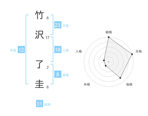 竹沢 了圭さんの総格は31画の5点!