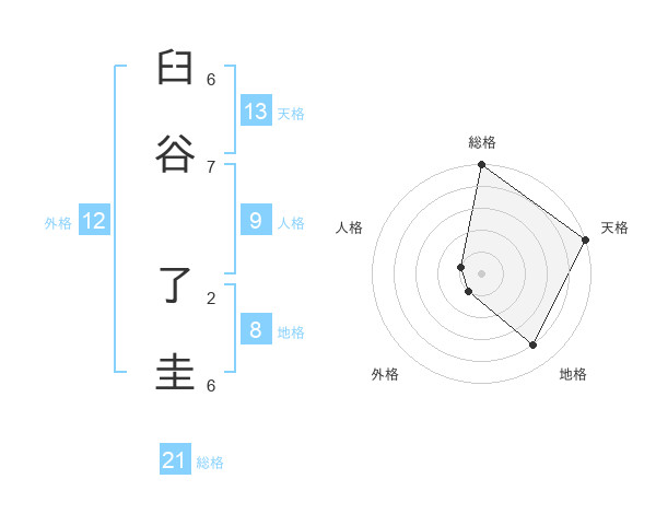 臼谷 了圭さんを姓名の画数から五運を鑑定