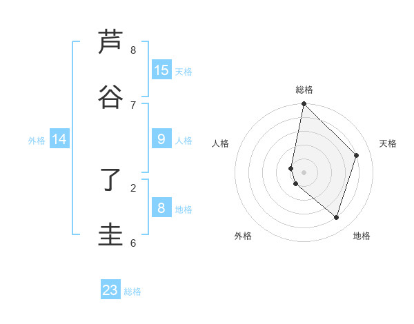 芦谷 了圭さんの総格は23画の5点!