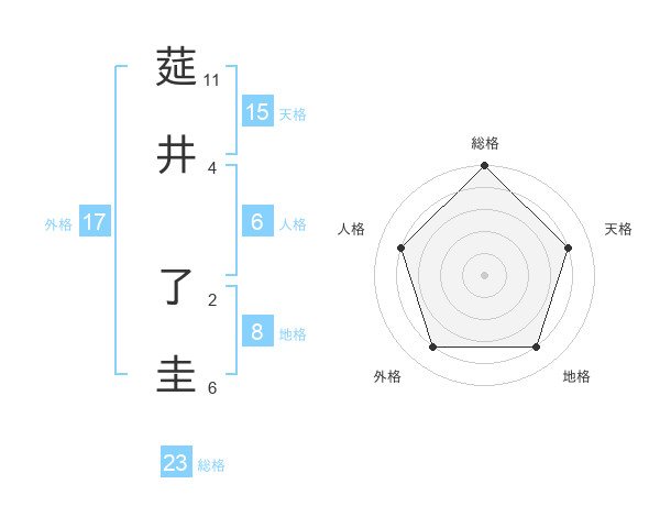 莚井 了圭さんの総格は23画の5点!