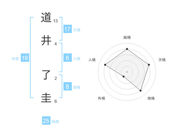 道井 了圭さんの総格は25画の4点!
