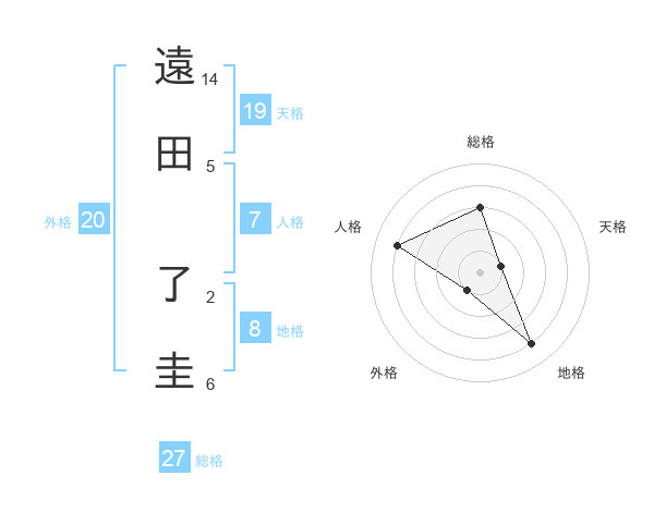 遠田 了圭さんの総格は27画の3点!