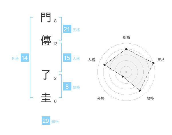 門傳 了圭さんの総格は29画の4点!