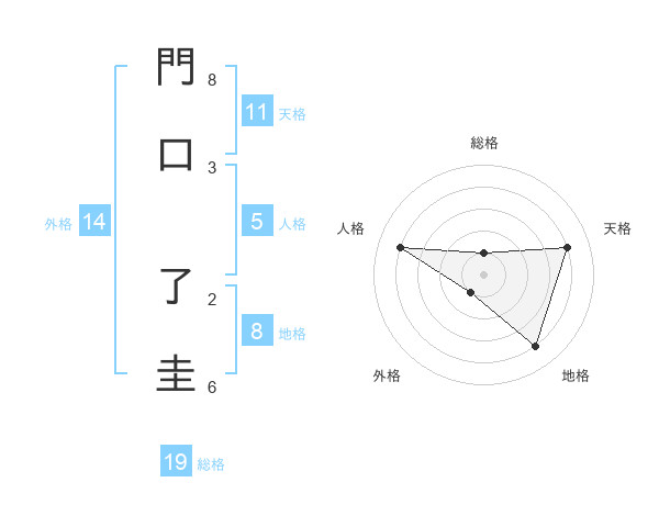 門口 了圭さんの地格は8画の4点!