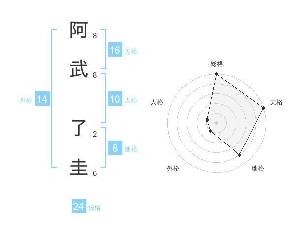 阿武 了圭さんを姓名の画数から五運を鑑定