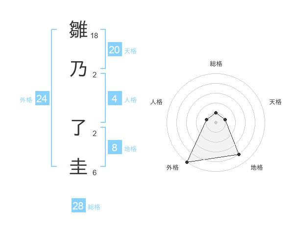 雛乃 了圭さんの天格は20画の1点!