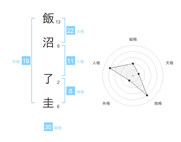 飯沼 了圭さんを姓名の画数から五運を鑑定