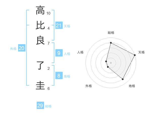 高比良 了圭さんの天格は21画の5点!