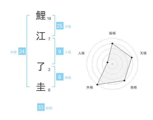 鯉江 了圭さんを姓名の画数から五運を鑑定