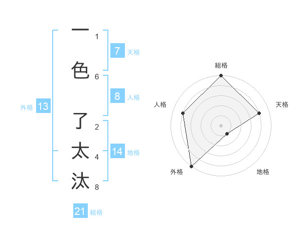 一色 了太汰さんを姓名の画数から五運を鑑定