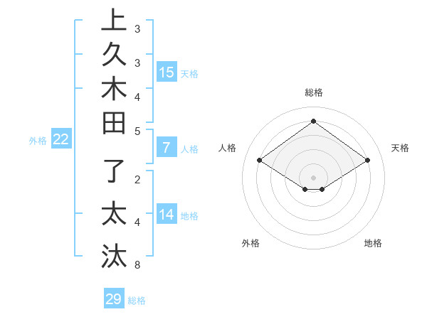 上久木田 了太汰さんを姓名の画数から五運を鑑定