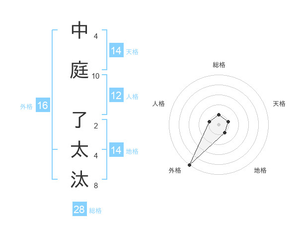 中庭 了太汰さんを姓名の画数から五運を鑑定
