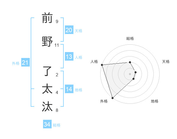 前野 了太汰さんを姓名の画数から五運を鑑定