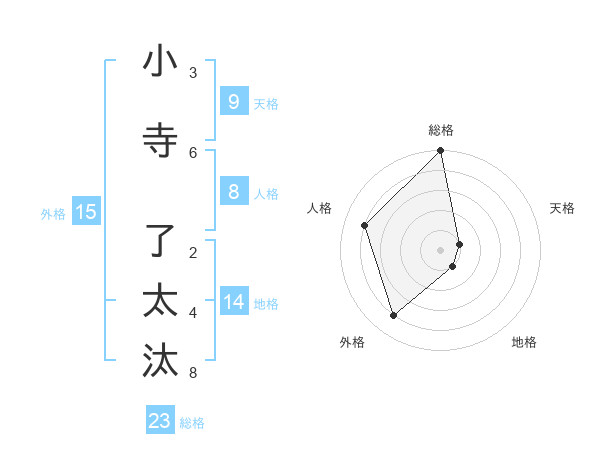 小寺 了太汰さんを姓名の画数から五運を鑑定