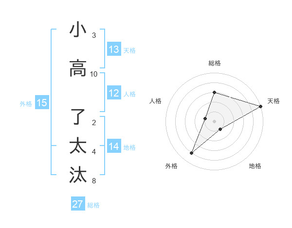 小高 了太汰さんを姓名の画数から五運を鑑定