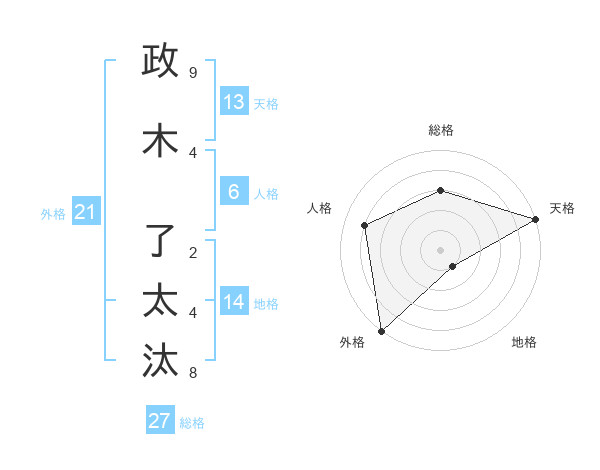 政木 了太汰さんの天格は13画の5点!
