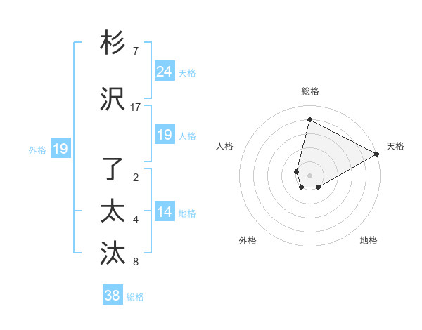 杉沢 了太汰さんを姓名の画数から五運を鑑定