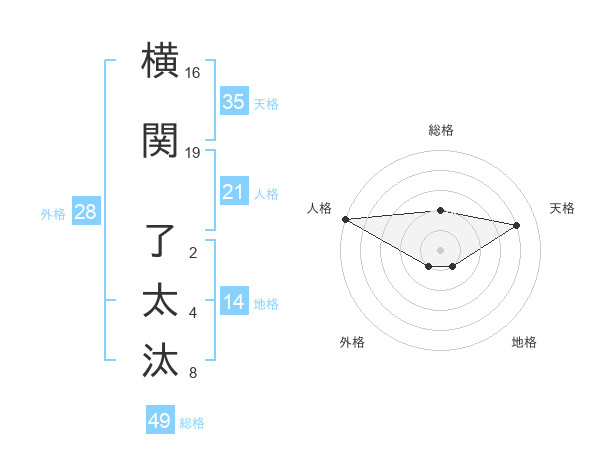 横関 了太汰さんの人格は21画の5点!