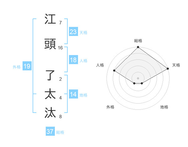 江頭 了太汰さんを姓名の画数から五運を鑑定