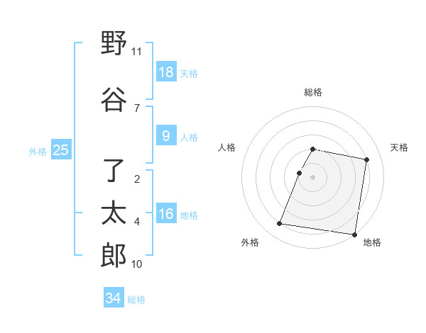 野谷 了太郎さんを姓名の画数から五運を鑑定