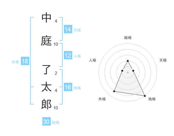 中庭 了太郞さんの総格は30画の2点!