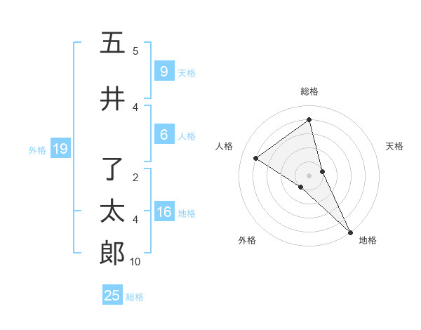 五井 了太郞さんの総格は25画の4点!