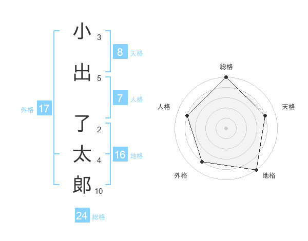 小出 了太郞さんの外格は17画の4点!