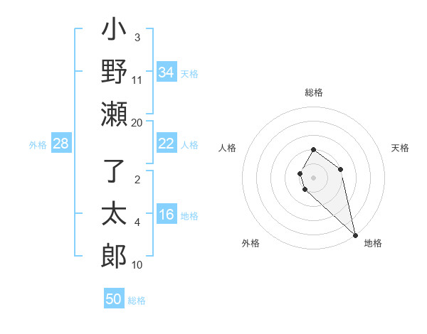 小野瀬 了太郞さんの総格は50画の2点
